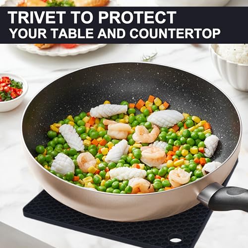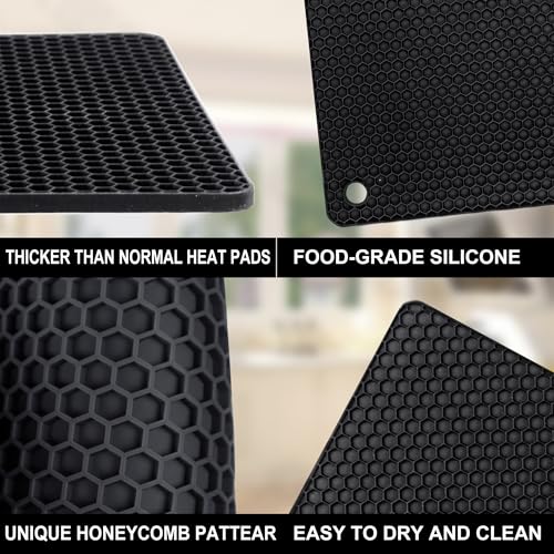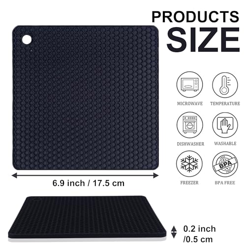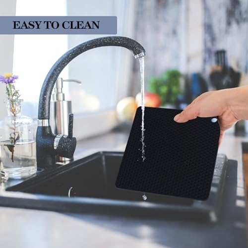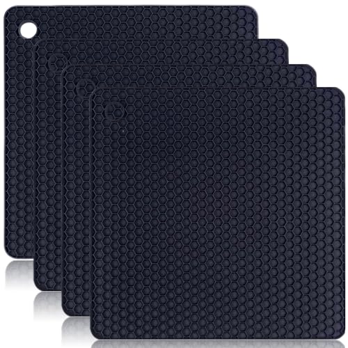 AICMEI - مجموعة حامل أواني ساخنة ومقالي سيليكون من ايكمي، متعددة الأغراض غير قابلة للانزلاق ومقاومة للحرارة لسطح المطبخ / الطاولة (مربع-أسود) 4 قطع