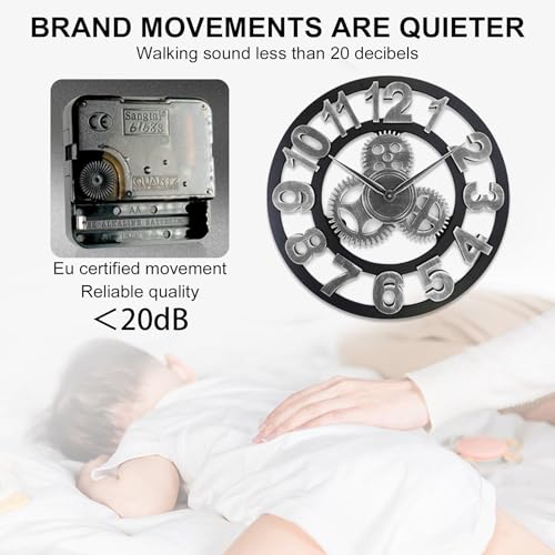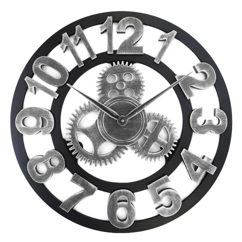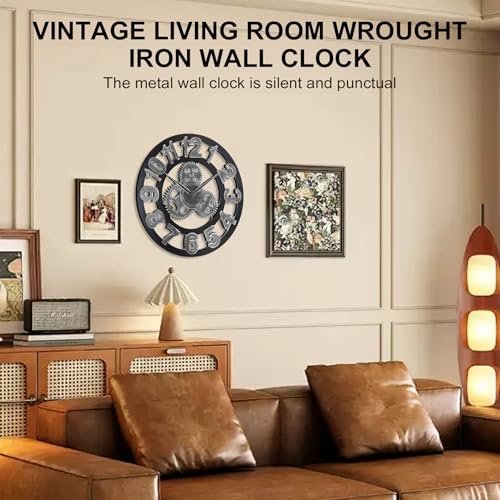 AIDOWU - ساعة حائط كبيرة من حديد صناعي مقاس 50 سم من ايدوو، ساعة حائط دائرية صامتة مع أرقام رومانية، رائعة للمكاتب والمطابخ وغرف المعيشة وغرف النوم