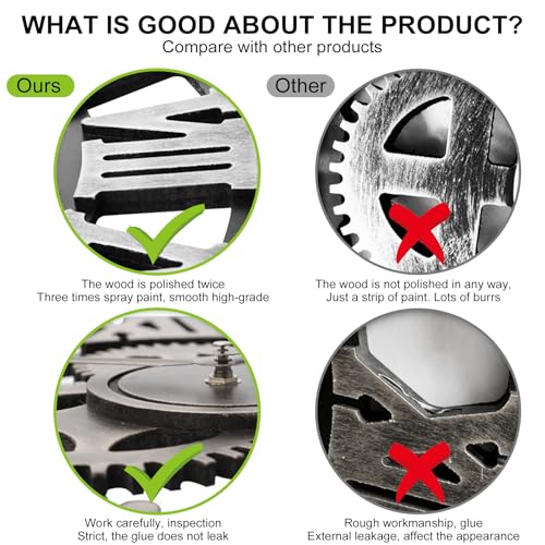 - مواد عالية الجودة، ساعة الحائط الإبداعية هذه مصنوعة من مواد عالية الجودة متينة وتدوم طويلاً. يضمن هيكل الحديد المعدني المتين المتانة وطول العمر، بينما تضمن آلية التوقيت الدقيقة عرضًا دقيقًا للوقت. تتميز ساعة الحائط ذات الطراز الكلاسيكي بإطار معدني وعلامات أرقام رومانية، مما يضيف لمسة من الأناقة إلى أي غرفة