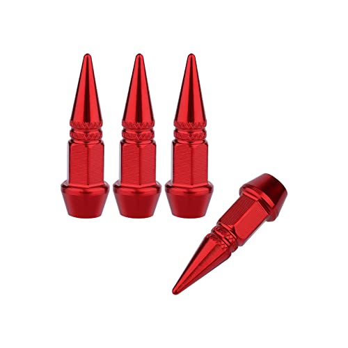 AIEX - مجموعة أغطية صمامات ألومنيوم متينة ومقاومة للغبار وللهواء للسيارات وسيارات الدفع الرباعي والشاحنات والموتوسيكلات وللدراجات الهوائية من ايكس - 4 قطع (شكل منشفة حادة، أحمر)
