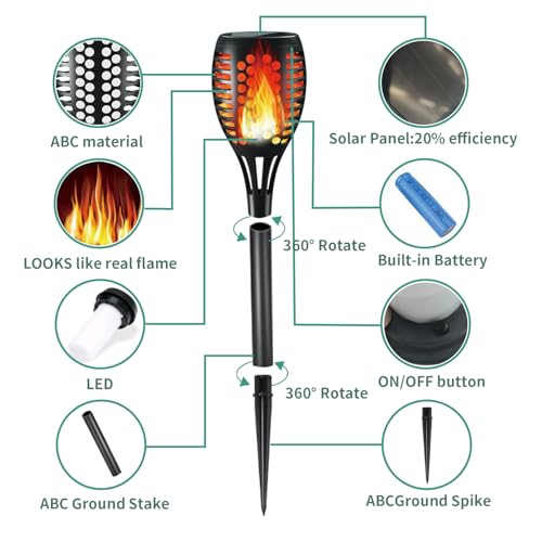 - Broad Decorations Scenarios: Solar torch lights are prefect outdoor decorations for patio, yard, garden, porch, pool, pathway, walkway and party, camping, barbecue, wedding, halloween, christmas festival, which could provide a perfect campfire ambience.