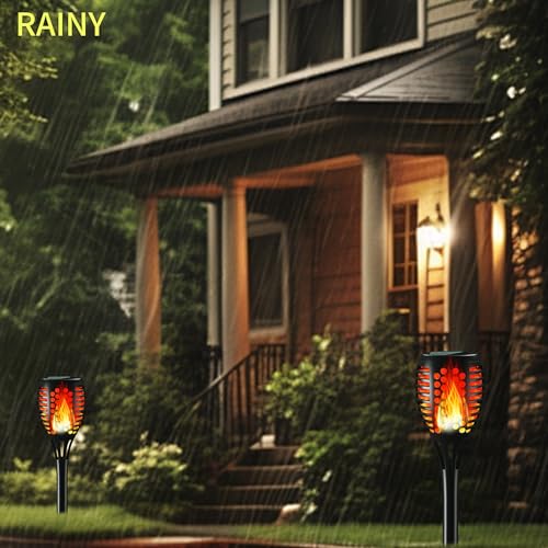 - Waterproof &Durable:The solar lights flickering flame are made of high quality durable and IP65 waterproof ABS material to stand up to any weather conditions, they will add scenery to your summer nights or embellish your garden with a warm sparkle in the rain or snow.