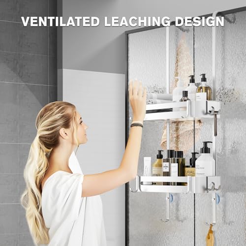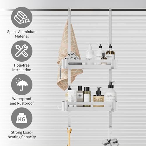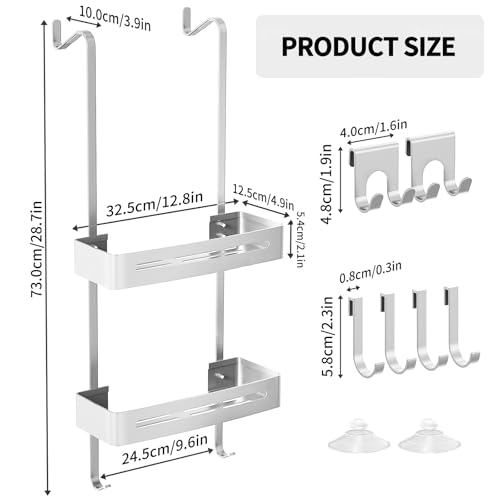- رف استحمام متعدد الوظائف بسعة كبيرة وسعة تحميل عالية؛ يوفر مساحة كافية للشامبو وجل الاستحمام والمناشف وأرواب الحمام والإسفنج وغيرها من ضروريات الاستحمام. لن تحصل على رف دش موفر للمساحة فحسب، بل يمكنك أيضًا اختيار 6 خطافات فردية على رف الحمام لتنظيم حمامك بشكل أفضل بمساعدة منظم الدش.