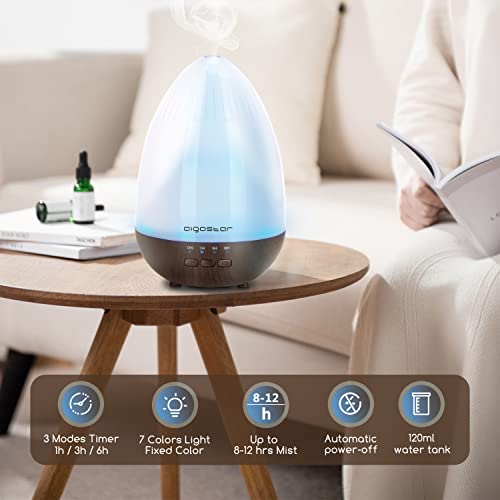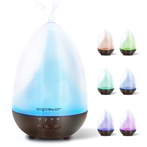 Aigostar - موزع زيوت الروائح العطرية بـ 7 الوان مع مؤقت بـ 3 اوضاع وخاصية الايقاف التلقائي، خالٍ من مادة البيسفينول أ، موزع زيوت عطرية ومرطب للهواء سعة 120 مل للمنزل وغرف النوم والمكتب من ايجوستار، لون اسود