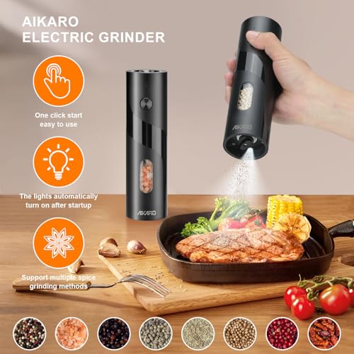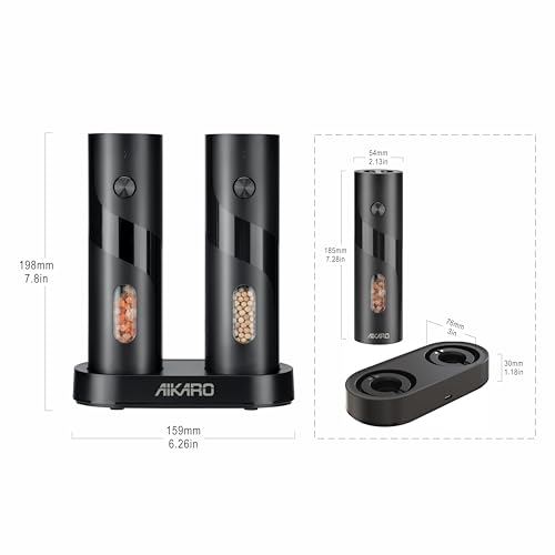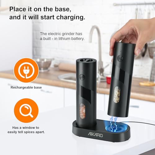 AIKARO - مطحنة ملح وفلفل كهربائية اوتوماتيكية قابلة لاعادة الشحن من ايكارو (مجموعة القاعدة)