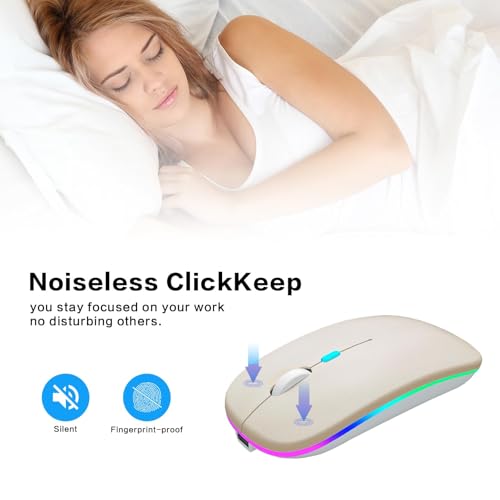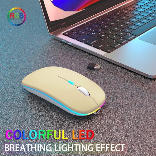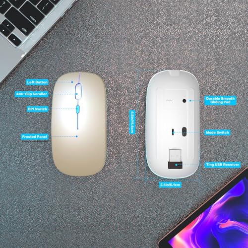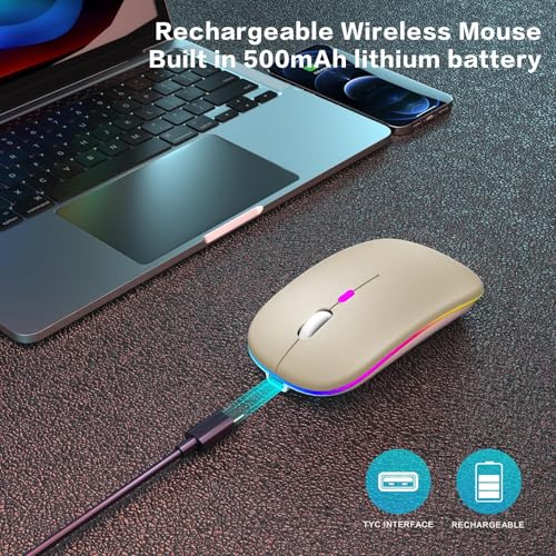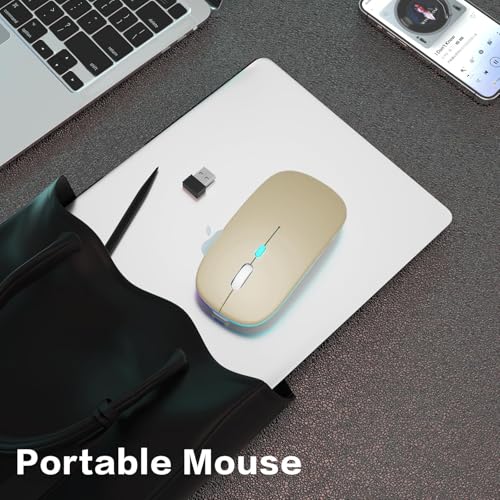 AIKOKOK - ماوس لاب توب بلوتوث لاسلكي قابل لإعادة الشحن، ماوسات كمبيوتر محمولة بإضاءة ليد (بلوتوث 5.2 أو USB 2.4G) وضع مزدوج للاتصال صامت ونحيف للاب توب/اي باد/أجهزة تابلت/آبل ماك بوك/كمبيوتر من ايكوكوك (ذهبي)