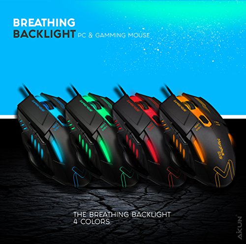 Aikun - ماوس ألعاب بسلك طراز MORPHUS GX51 مع 4 مستويات نقطة لكل بوصة قابلة للتعديل و 7 ألوان إضاءة ليد دائرية ومتغيرة للاستخدام مع أجهزة اللاب توب والكمبيوتر وأجهزة ماك من ايكون