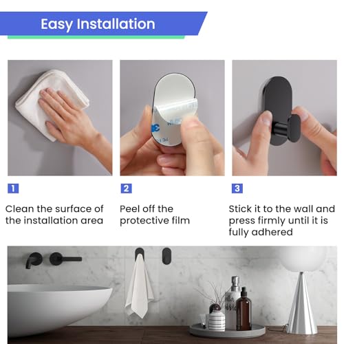 - 【خطافات لاصقة شديدة التحمل 17 باوند】 هذه الخطافات المثبتة على الحائط مصنوعة من مادة لاصقة صناعية لحمل أرواب الحمام الثقيلة أو المناشف المبللة أو أدوات المطبخ بأمان في الحمام أو الدش. لا تقلق أبدًا بشأن سقوط الخطافات اللاصقة أو فوضى الأرضيات مرة أخرى!