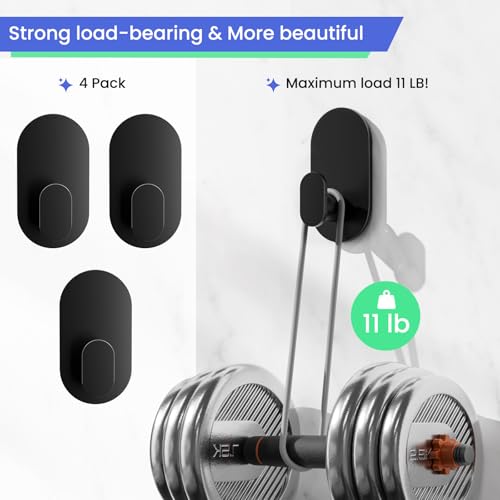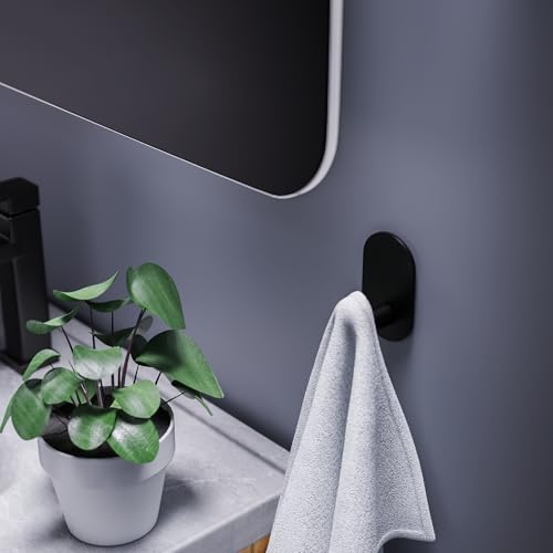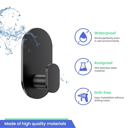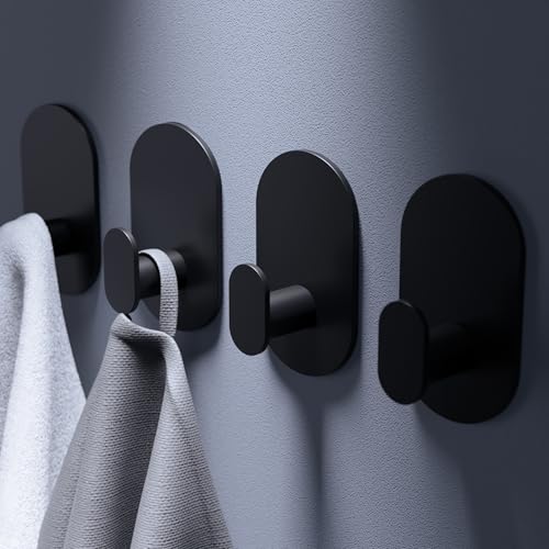 Aikzik - خطافات لاصقة من ايكزيك، 4 قطع من خطافات التثبيت على الحائط، خطافات لاصقة بحد اقصى 18 باوند لتعليق الارواب والمناشف والقبعات والملابس، خطافات من الستانلس ستيل بدون ثقب للحمام وغرفة النوم والمطبخ، أسود