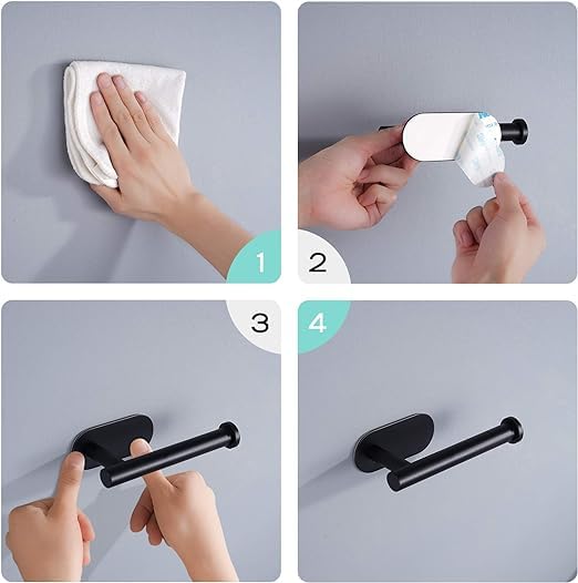 - 【ملاحظة】: حامل ورق المرحاض غير مناسب لورق الحائط أو الجدران المطلية. يرجى تركه لمدة 24 ساعة قبل تعليق شيء ما لضمان التصاق أفضل.