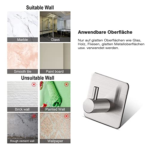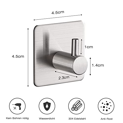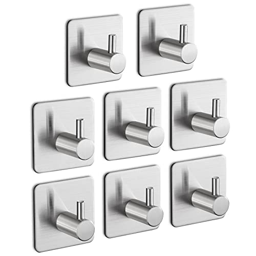 Aikzik - خطافات ذاتية اللصق بدون ثقب من الفولاذ المقاوم للصدأ لتعليق فوط الحمام واكسسوارات المطبخ ايكزيك عبوة 8 قطع فضي 35.0 رطل 35.0