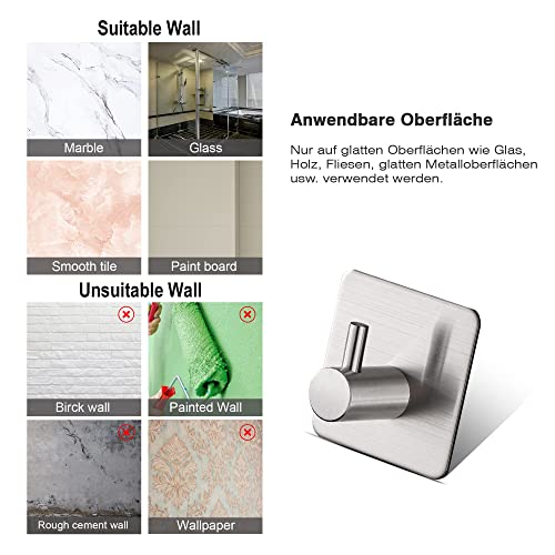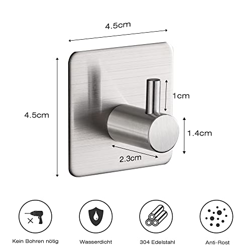 Aikzik - خطافات ذاتية اللصق من ايكزيك 4 قطع خطاف منشفة بدون ثقب حامل الستانلس ستيل حائط ذاتي لتعليق روب الحمام لاصق للمطبخ والحمام الحد الأقصى للوزن الموصى به: 5.0 كيلوجرام