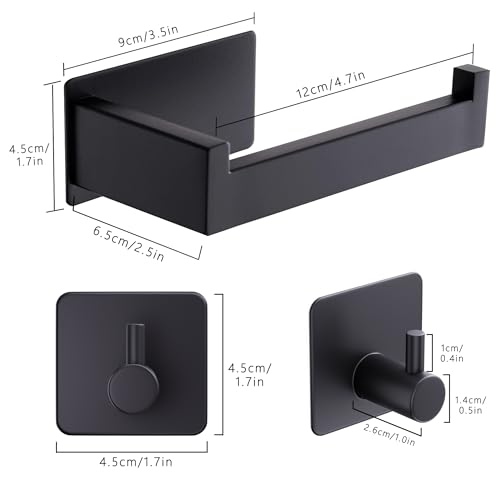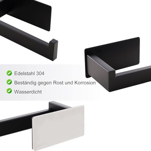 Aikzik - حامل ورق التواليت، حامل ورق تواليت ذاتي اللصق بدون ثقب، حامل ورق التواليت من الفولاذ المقاوم للصدأ مع 2 قطعة من خطافات المناشف للمطبخ والحمام، أسود من ايكزيك