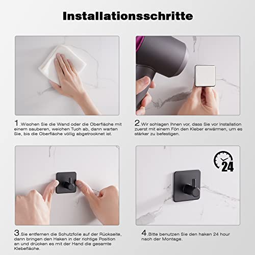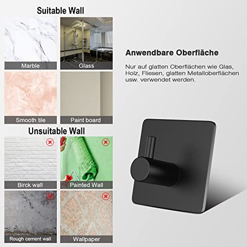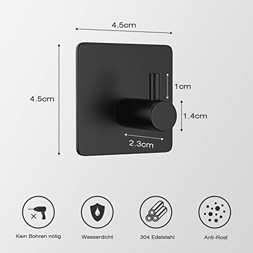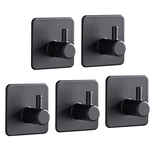 Aikzik - عبوة من 5 خطافات تعليق مناشف ذاتية اللصق الفولاذ المقاوم للصدأ حامل يثبت على الحائط مثالية للحمام والمرحاض والمطبخ والمكتب ايكزيك لون أسود ستانلس ستيل 300.0 رطل 300.0