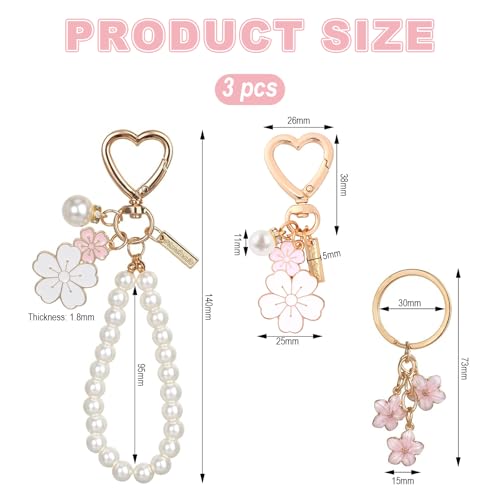 Aililong - مجموعة من 3 حلقات مفاتيح على شكل زهرة للنساء من ايليلونج، سلسلة مفاتيح السيارة والشنط والدلاية