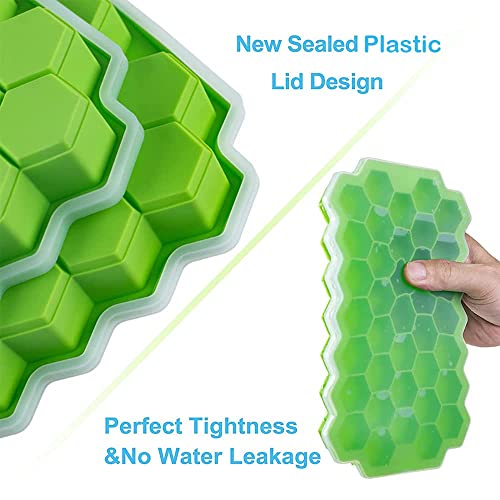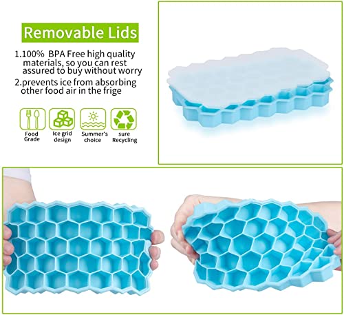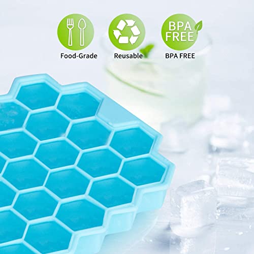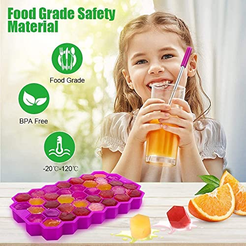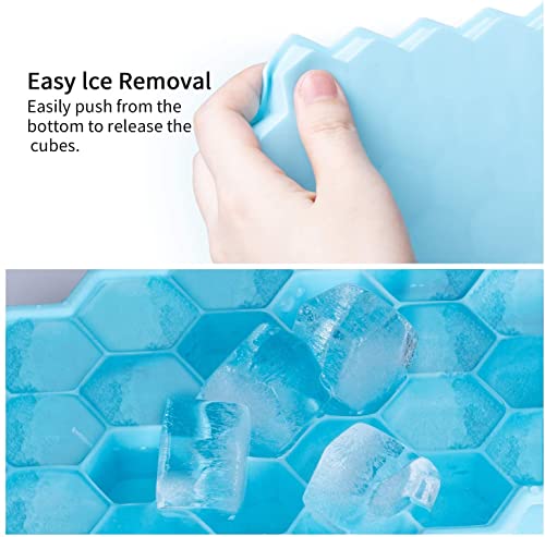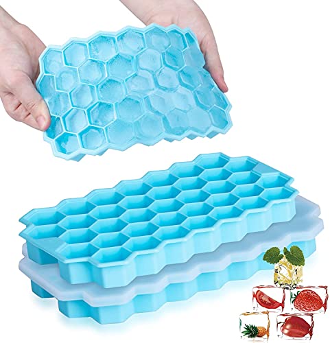 AIMERS - صينية مكعبات الثلج من السيليكون مع غطاء بلاستيكي سهلة الفك وقابلة للرص من ايمرز، قطعتين من 74 مكعبًا، صينية مرنة على شكل خلية نحل للمشروبات وطعام الأطفال خالية من بيسفينول أ (متعددة الألوان)