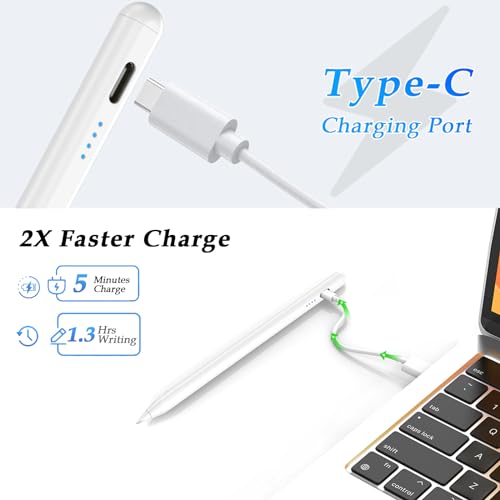 - 【وقت استعداد طويل】- يتم شحن القلم بواسطة منفذ نوع سي (متضمن)، ولا يدعم الشحن اللاسلكي. يشحن لمدة 30 دقيقة ويعمل لمدة 8 ساعات، اضغط مرة واحدة على الزر العلوي للقلم لتشغيل/إيقاف التشغيل بسهولة.