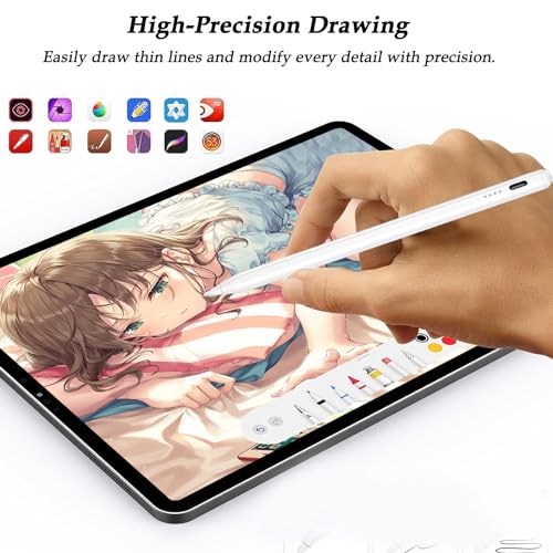 Aimery - قلم ستايلس لجهاز اي باد 2024-2018 من ايميري، قلم اي باد آبل من الجيل التاسع والعاشر متوافق مع اي باد 10/9/8/7/6، اي باد برو 32 /28/33 سم (M4)، اي باد ميني 6/5، ايباد اير 5/4/3/ 28- 33 سم (M2) أبيض