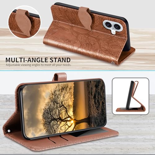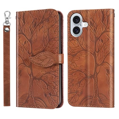 Aimigel - جراب حماية لموبايل آبل آيفون 17 6.3 بوصة 2025، جراب قابل للطي لآيفون 17 من جلد صناعي مع شريط قصير مع حامل كروت / فتحة [إغلاق مغناطيسي] [شريط معصم] [مسند] مقاوم للصدمات للنساء والرجال من ايميجيل، بني