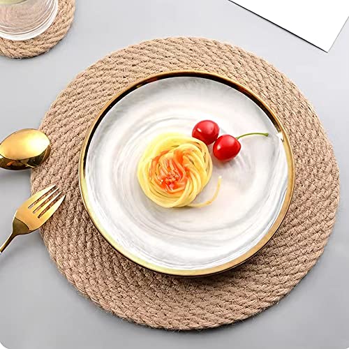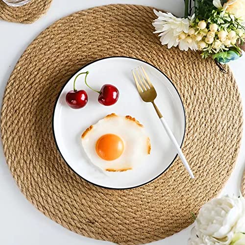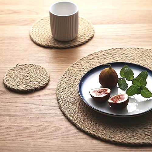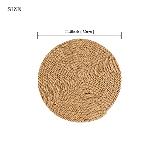Aiminjey - مفارش مستديرة منسوجة مقاس 30 سم من أيمنجي، مجموعة من مفرشين طاولة طعام للمطبخ من الجوت الطبيعي، مفارش طاولة مستديرة بنمط بوهو ريفي مقاومة للحرارة ومضادة للانزلاق