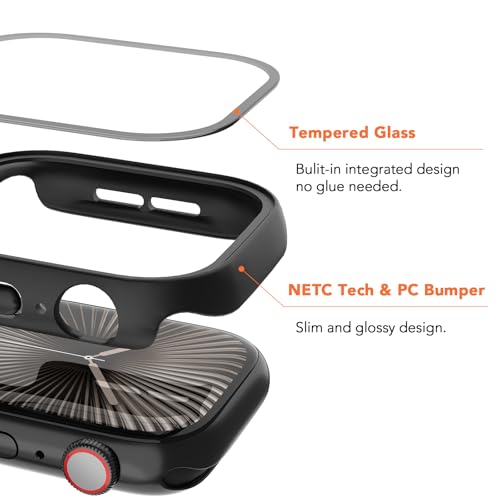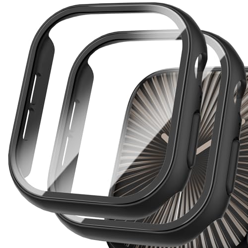Aimtel - جراب حماية صلب عالي الجودة HD بشاشة حماية من زجاج مقوى من ايمتيل متوافق مع ساعة آبل سلسلة 10 46 ملم، جراب حماية شامل رفيع للغاية ومضاد للصدمات لساعة اي ووتش 10 46 ملم، عبوة من 2 قطعة