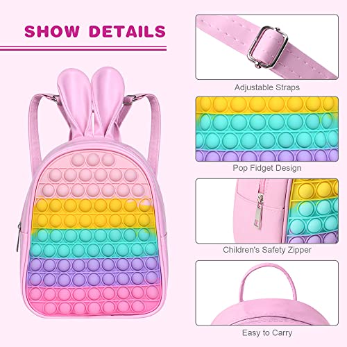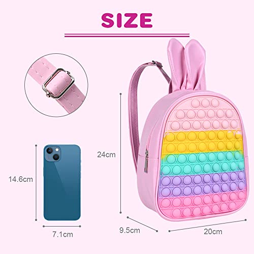 Ainiv - عينيف شنطة كتف فيدجيت من بوبيت بتصميم اذني ارنب بلون زهري البولي يوريثين ظهر مع اذن البنات