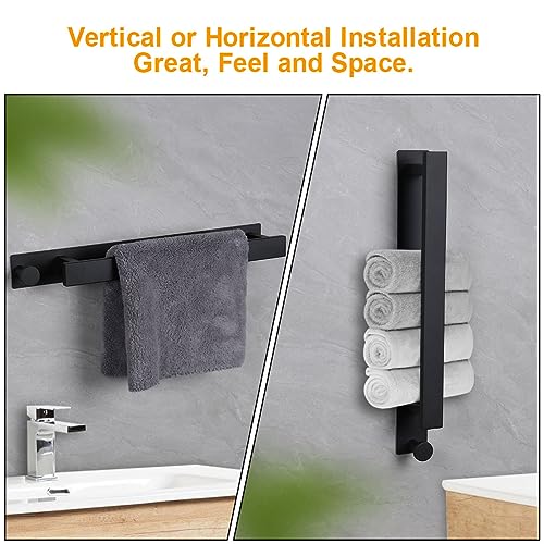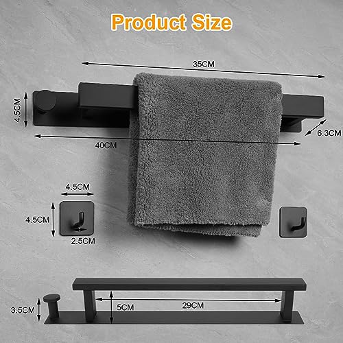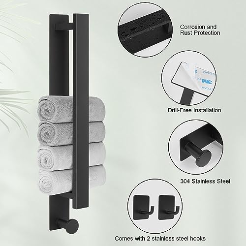 Ainiv - حامل فوط من الفولاذ المقاوم للصدأ مع خطافين إضافيين، لا يحتاج إلى ثقب وذاتي اللصق من عينيف، أسود