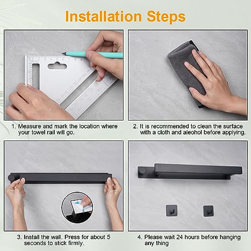 - تركيب سهل وسريع: يتميز حامل الفوط بتصميم ذاتي اللصق بدون ثقب مع لاصق فائق على الظهر، وهو ثابت للغاية. بفضل الشريط اللاصق المطوّر ذي الوجهين، يمكن تثبيت حامل الفوط الأسود بسهولة على الجدران الملساء. يرجى الانتظار 24-48 ساعة بعد التركيب قبل استخدامه لضمان التصاق أفضل.