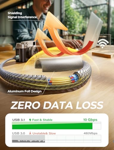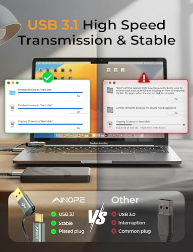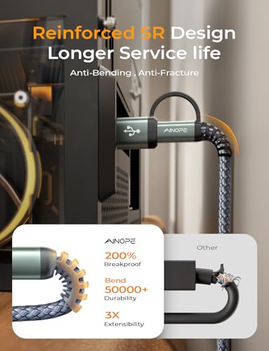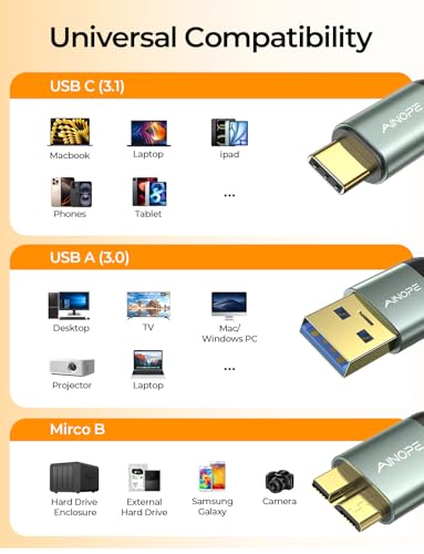 AINOPE - اينوبي كيبل مايكرو 3.0، [ترقية جديدة] USB A/C الى B بطول 3.3 قدم/1 متر [مغطى بالنايلون]، محرك الأقراص الصلبة الخارجي نوع ذكر بي لسيجيت دبليو دي توشيبا، ماك بوك اير/برو