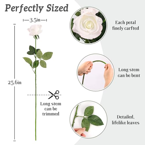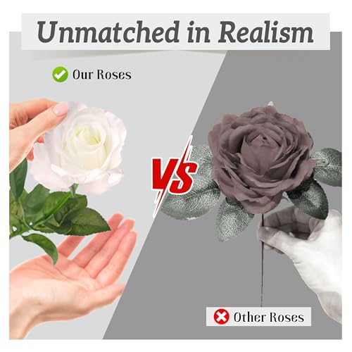 - ورود نابضة بالحياة لجمال دائم: استمتع بمظهر الزهور الحقيقية مع الورود الاصطناعية عالية الجودة، المصممة بتقنية متقدمة للاحتفاظ بالرطوبة لتبقى منتعشة ونابضة بالحياة لسنوات. تضفي هذه الورود الصناعية الأناقة على أي مساحة، سواء لباقات الزفاف أو حفلات ما قبل الزفاف أو كلمسات ديكور منزلية مذهلة