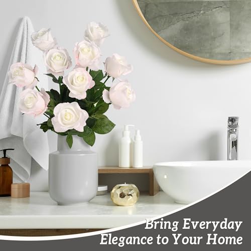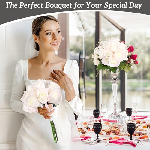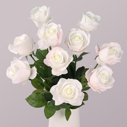 AIPETREE - زهور صناعية من ايبتري، 10 قطع من الورود الاصطناعية الواقعية لباقات الزفاف والقطع المركزية وديكور المنزل، مثالية لترتيبات الزفاف والحفلات، لون أيض