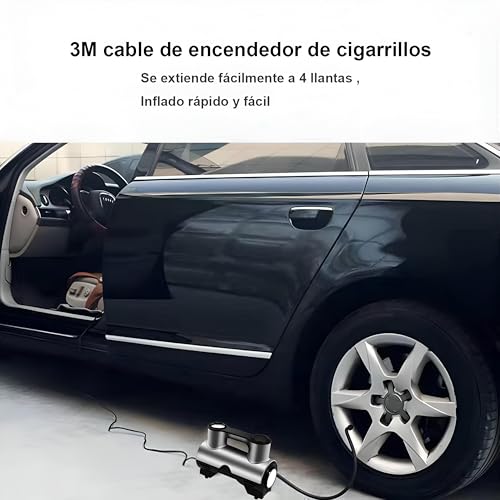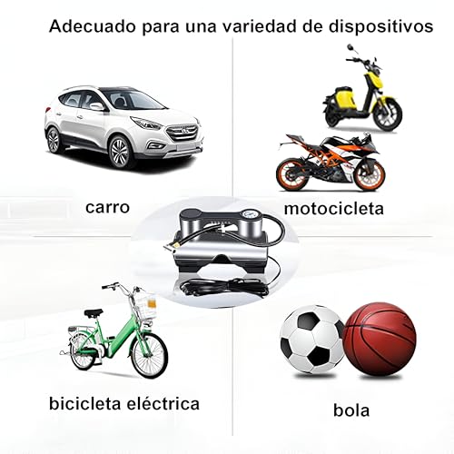 Generic - منفاخ إطارات 12V للسيارات والدراجات النارية وأدوات التمارين الرياضية مع إضاءة LED وإيقاف تلقائي وقياس رقمي، فوهات توصيل سريع بتصميم خفيف الوزن