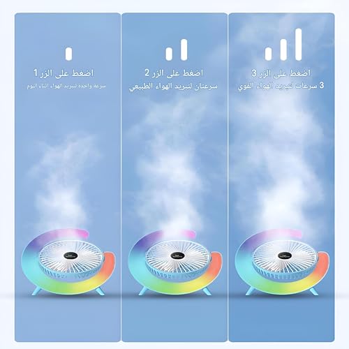 - مروحة سطح مكتب ملونة متعددة الوظائف بتصميم محمول يمكن وضعها على الأرض، وتتميز بشحن USB للاستخدام الشخصي. يتضمن ضمان السلامة الليلية وإضاءة ملونة محيطة، مما يعزز الجو الداخلي مع إضاءة ناعمة تجعل البيئة أكثر أمانًا وليس مظلمة.