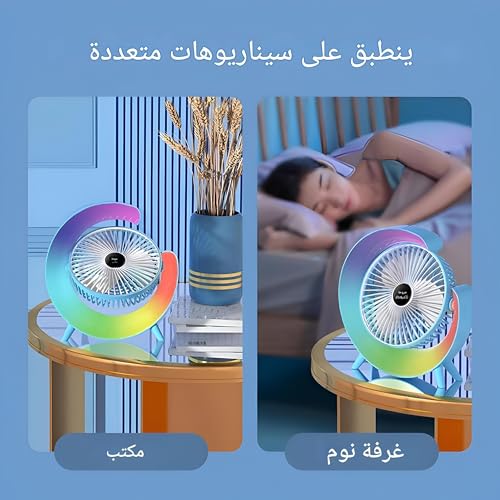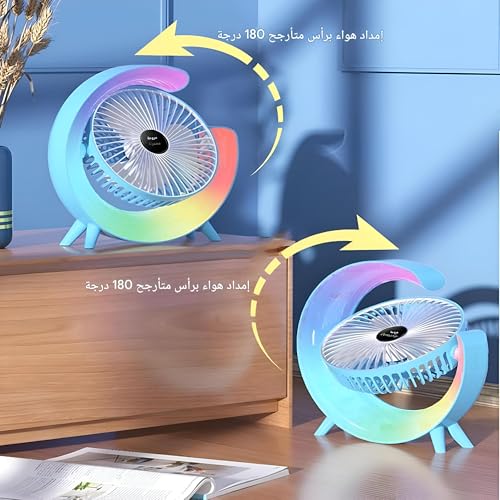 Generic - مروحة دوران الهواء - مروحة متعددة الاستخدامات وملونة مصممة للاستخدام الشخصي، تتميز بشحن USB وارتفاع قابل للتعديل وضوء لمزيد من الوظائف.