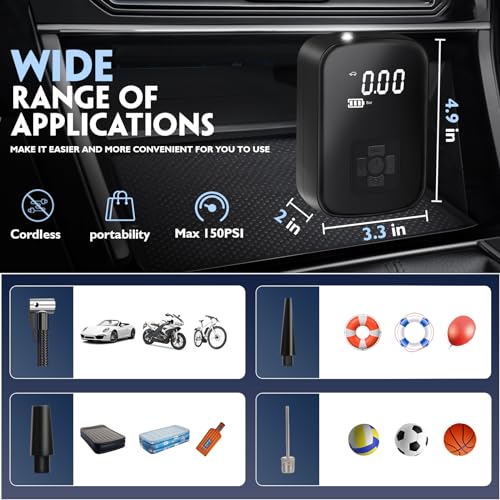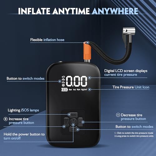 - منفاخ كهربائي فعال: محرك قوي مع شفرات مروحة محاكاة حيوية؛ يسخن في ثانية واحدة؛ ينفخ حتى 150 باوند لكل انش مربع؛ يتضمن 3 فوهات للسيارات والدراجات النارية وكرة القدم وأكثر من ذلك