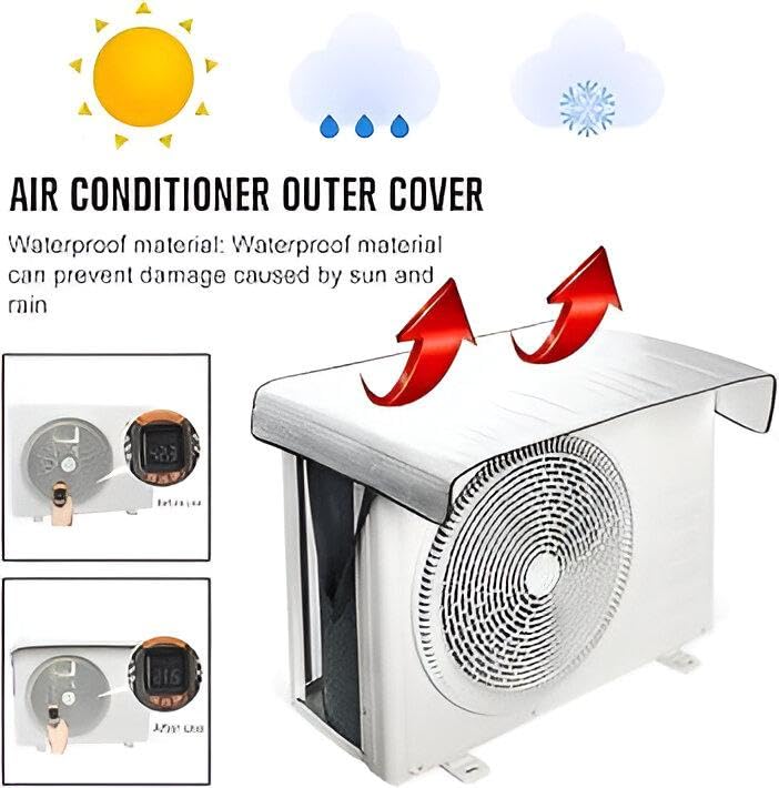 - مادة مقاومة للماء والعوامل الجوية: مصنوع من مادة مقاومة للماء توفر حماية قوية ضد العوامل الجوية. يحجب أشعة الشمس بفعالية لمنع ارتفاع الحرارة وتلف الأشعة فوق البنفسجية، كما يحمي مكيف الهواء من المطر والرطوبة، مما يضمن أداء طويل الأمد ويمنع الصدأ أو التآكل.