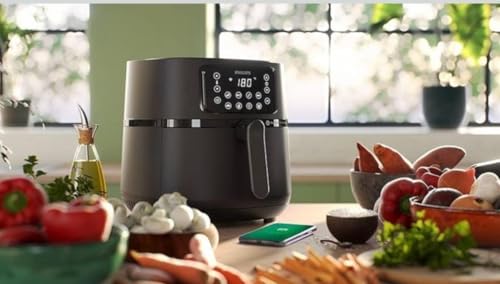- الموديل: HD9285/91 (من سلسلة 5000) أو الموديلات المشابهة. الطاقة: 2000 واط، نطاق درجة الحرارة: 40-200 درجة مئوية، اللون: أسود في الغالب: 220 فولت، باختصار، إنه وعاء هواء قوي ومتكامل يجمع بين الحجم الكبير والتكنولوجيا الذكية والطهي الصحي، مما يجعله مثاليًا للعائلات التي تبحث عن أداة مطبخ متعددة الاستخدامات