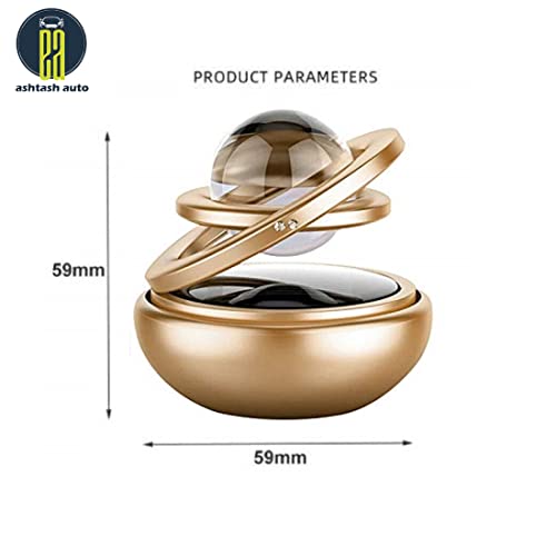 ASHTASH AUTO - معطر جو يعمل بالطاقة الشمسية 360 درجة يعمل بالطاقة الشمسية بخاصية إطلاق الروائح العلاجية، موزع سيارة دوار بحلقة مزدوجة، ذهبي