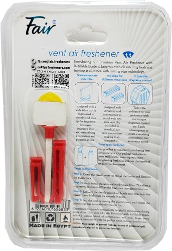 - ✅فواحة و معطر جو وهواء بمشبك يثبت على فتحة تهوية السيارة - تصميم مثالي وتأثير ممتاز ويدوم طويلاً بزجاجة قابلة لإعادة التعبئة بالعطر المفضل لديك