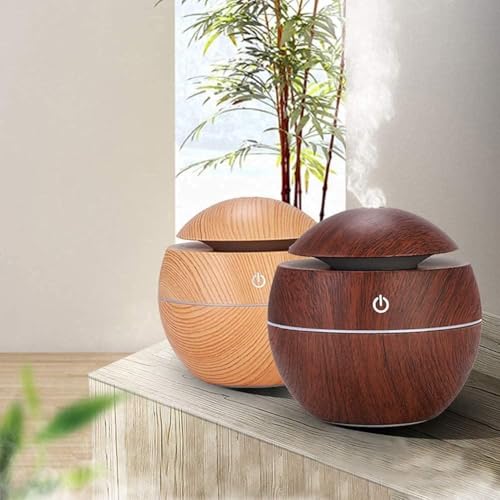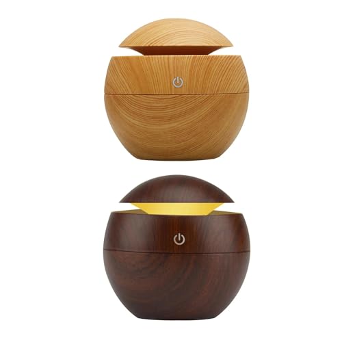 H-Home - معطر ومرطب هواء، مرطب هواء أوتوماتيكي على شكل كرة خشبية مع مستشعر بالأشعة تحت الحمراء لتنقية الهواء بالرذاذ البارد للمنزل والمكتب والفندق والمدرسة مع وصلة شاحن، قطعتين