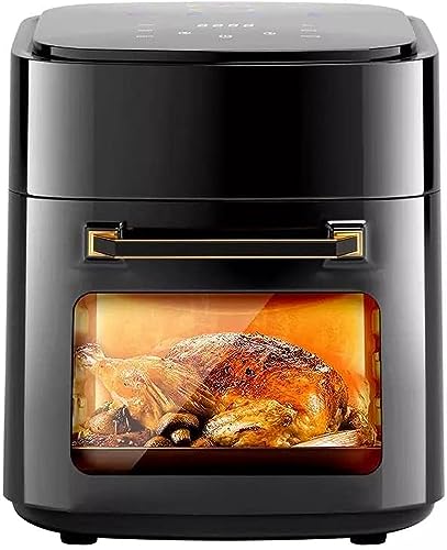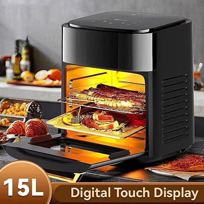 Generic - قلاية هوائية 15 لتر فرن تحميص كهربائي 1400 واط جهاز توستر للأسرة بشاشة LCD ديجيتال تعمل باللمس إعدادات مسبقة 6 في 1 للخبز والتحميص والتجفيف مع ملحقات أسود ايه .