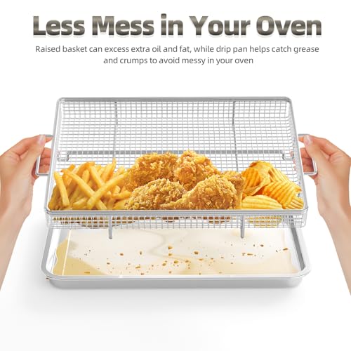 - لا تتقشر، سلة وصينية القلي هوائية للفرن مصنوعة من الفولاذ المقاوم للصدأ عالي الجودة بدون طلاء، مما يضمن سلامة طعامك دون قلق من التقشر.
