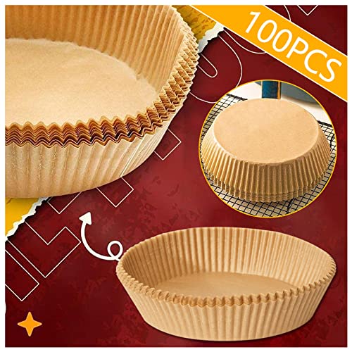 Spaceshoop - ورق زبدة دائري غير مثقوب غير لاصق للقلاية الهوائية والميكروويف للاستعمال مرة واحدة، للتحميص والطبخ، مستلزمات المنزل والمطبخ (بني/100 قطعة/6.3 بوصة)