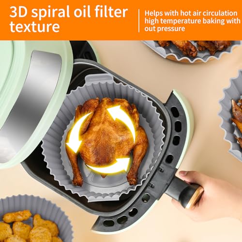 - سيليكون عالي الجودة: مصنوعة من السيليكون الآمن غذائيًا، بطانات المقلاة الهوائية هذه آمنة للاستخدام وتضمن توزيعًا متساويًا للحرارة، مما يمنحك نتائج مقرمشة ولذيذة تمامًا في كل مرة.