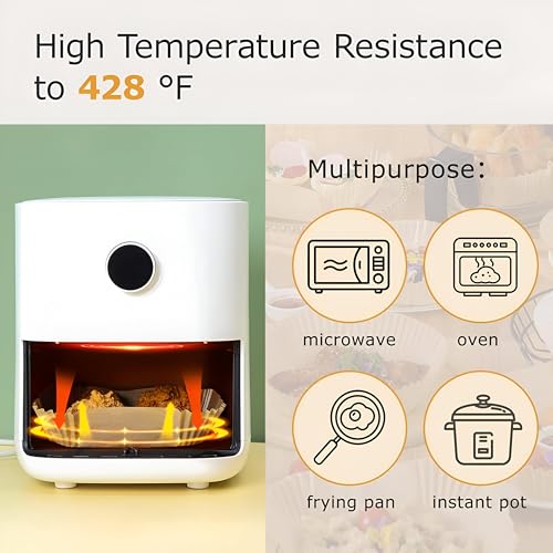 - بفضل تصميمها متعدد الاستخدامات، تعد هذه البطانات مناسبة لطرق الطهي المختلفة، بما في ذلك الطهي في الميكروويف والخبز والطهي بالبخار والشواء. يبلغ قطرها 7.8 بوصة مما يجعلها متوافقة مع معظم أحجام القلايات الهوائية، مما يجعلها ملحقًا أساسيًا للمطبخ لأي متحمس للطهي.
