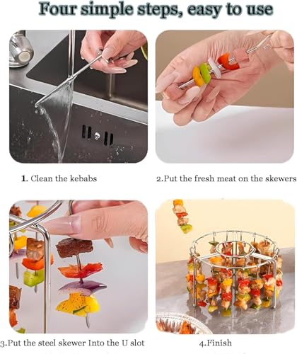 Generic - حامل أسياخ الشيش طاووق للمقلاة الهوائية، يأتي مع 24 سيخ ميني، مصنوع من الستانلس ستيل المقاوم للصدأ، مناسب لجميع المقالي الهوائية بلون فضي. 🍴🧑🍳 (فضي ١ قطعه)