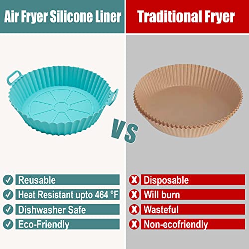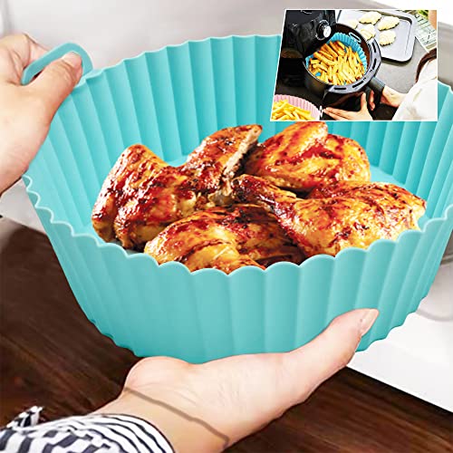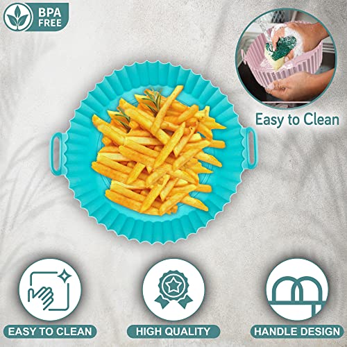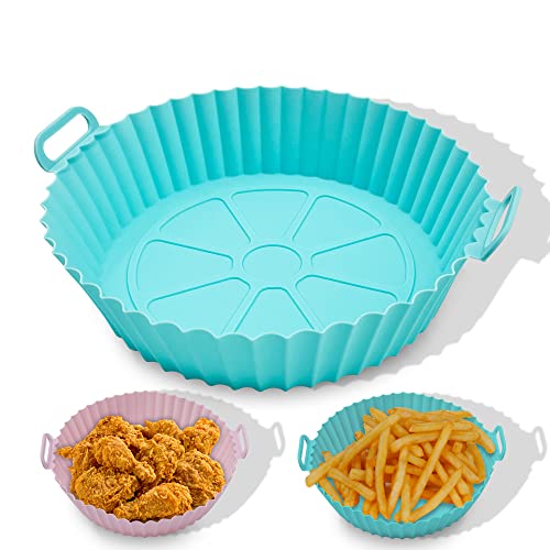 Spaceshoop - بطانات سيليكون للمقلاة الهوائية، وعاء سيليكون للمقلاة الهوائية مقاس 19 سم يناسب المقلاة الهوائية بسعة من 3.3 إلى 5.6 لتر، سهلة التنظيف وآمنة للاستخدام في غسالة الأطباق (أزرق ووردي)
