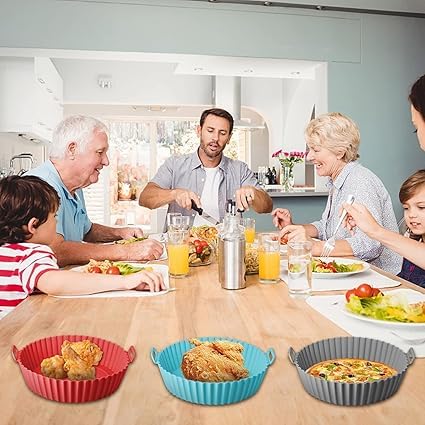 - المقاسات الكبيرة (7.5 انش، 6.5 انش، 5.5 انش، 5 انش، 4 انش، 3.5 انش) مما يجعلها رفيقة مطبخ متعددة الاستخدامات. نحن ندعم جودة حشوات المقلاة الهوائية الخاصة بنا مع ضمان الرضا بنسبة 100%. تم تصميم حشوات المقلاة الهوائية المصنوعة من السيليكون عالي الجودة لتحمل درجات الحرارة العالية وهي آمنة للغسل في غسالة الأطباق. يمكنك الاستمتاع بالطهي الخالي من الإجهاد وراحة البال التي يمكنك طهيها بأمان.