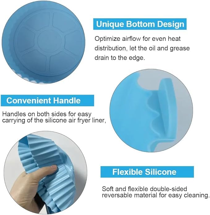 - مصنوع من سيليكون آمن غذائيًا بنسبة 100%: سلة سيليكون للقلاية الهوائية مصنوعة من السيليكون الآمن غذائيًا والمقاوم للحرارة. مقاومو للزيوت والحرارة، وتتحمل درجات حرارة تصل إلى 464 درجة فهرنهايت (240 درجة مئوية). مقاومة للالتصاق وغير سامة وخالية من مادة بيسفينول أ.