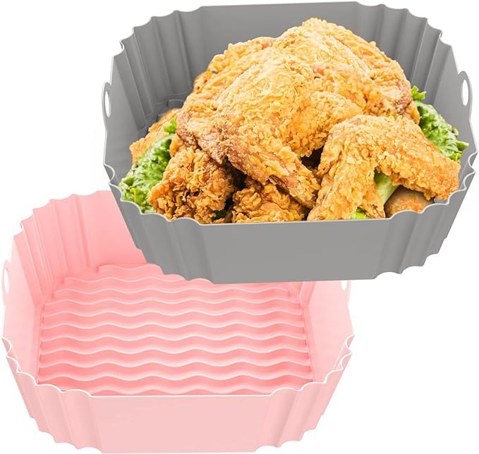 - تصميم عملي تحتوي وسادة المقلاة الهوائية على حافة عالية مقاس 2.2 بوصة تحمي جوانب المقلاة، وتمنع الطعام من الالتصاق بها وتحافظ على مظهرها الجيد. توجد خطوط متموجة مرتفعة في الجزء السفلي من سلة المقلاة الهوائية المصنوعة من السيليكون، والتي يمكن أن يساعد في دوران الهواء وتوزيع الحرارة بشكل أفضل، مما يجعل طعامك مطهوًا ليكون مقرمشًا.